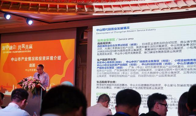 9月17日下午,由中山市发展和改革局主办,中山市现代服务业协会、深圳市服务贸易协会共同协办的"深中融合、共筑共赢"2019年深圳—中山现代服务业合作交流会在深圳南山华侨城威尼斯睿途酒店宴会1厅举行,中山市人民政府副秘书长吴军等领导出席了交流会。