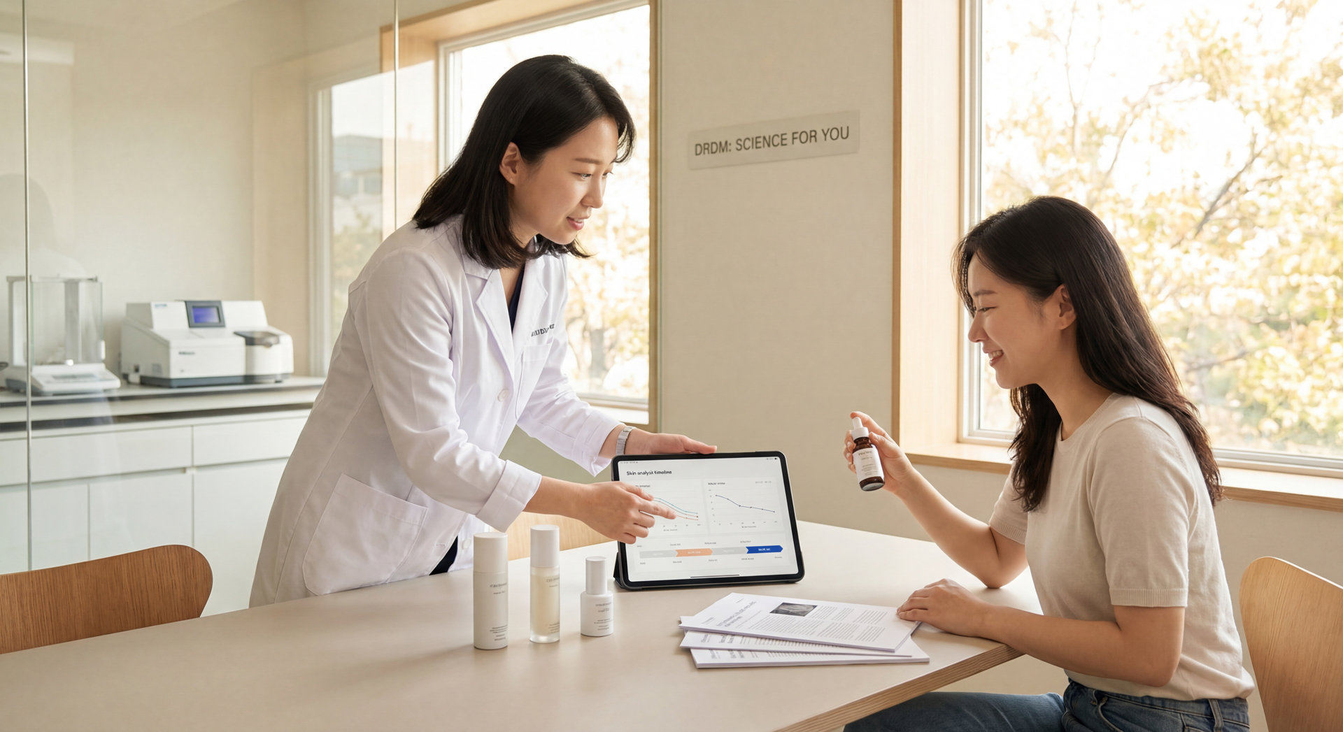 为了做到这一点,DRDM建立了一条完整的“三段式落地路径”:机制研究 → 路径验证 → 用户执行。机制研究解决成分为何有效;路径验证解决什么时候用、与什么搭配用;用户执行则通过护肤顾问体系完成闭环。只有三者贯通,科学才具备落地能力。